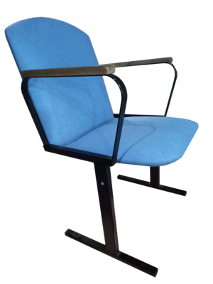 Кресло Э-03 для актового зала полумягкое кресло с откидным сиденьем на металлокаркасе. Металлический каркас кресла изготовлен из профильной трубы 40 х 25 х 1,5 мм и 25 х 25 х 1,5 мм. Все металлические части кресла для зала покрашены полимерно порошковой краской. Данная модель кресла не имеет ограничений по количеству мест в секции (многоместное кресло). Конструкция опоры кресла имеет устойчивую опору, что позволяет устанавливать его в актовых залах без крепления к полу (мобильное кресло для актового зала). В дополнительную комплектацию кресла входит: откидной столик (пюпитр) .. Мягкий элемент толщиной ППУ 30 мм.